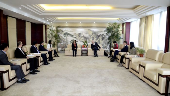 On October 22, Wu Chunmei, Chair of HFU Council, meets with Mr.Pit Heltmann, the new Consul General of German Consulate in Shanghai, and his delegation.
