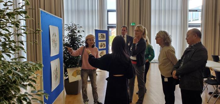 本屆會議主題緊扣兩國應用型高等教育學術研究的熱點及改革發展的瓶頸——“師資”,多國專家通過交流相互借鑒。同時,本次會議是安徽省與下薩克森州結好35周年的慶典活動,我校作為組織方為大會帶來了精彩的會間藝術展示環節,來自教育學院的教師陶莉在會議現場布展了個人作品并揮筆即興作畫,引來多國參會代表的熱烈關注與好評,將活動的慶典氛圍烘托到制高點。